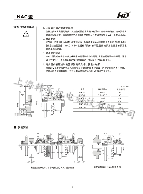离合器NAC使用范围: